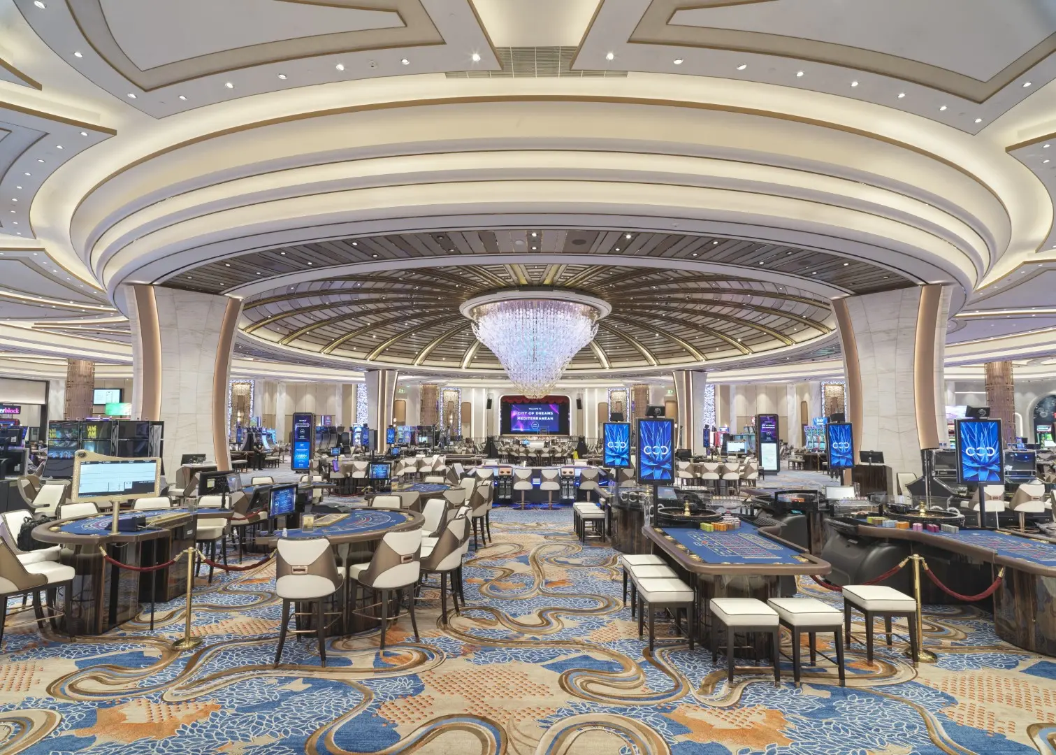 Justo enfrente del Venetian se encuentra City of Dreams, un complejo ultramoderno que se posiciona como un destino de entretenimiento integral. Su casino ocupa una impresionante área de 39.000 metros cuadrados y se distingue por su diseño vanguardista y su oferta de ocio de alta tecnología.